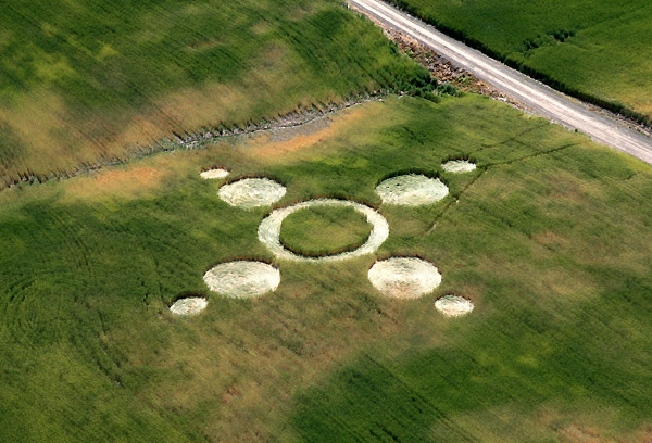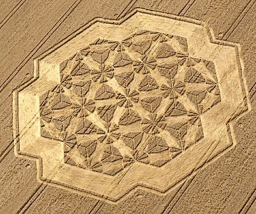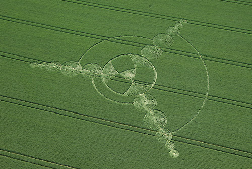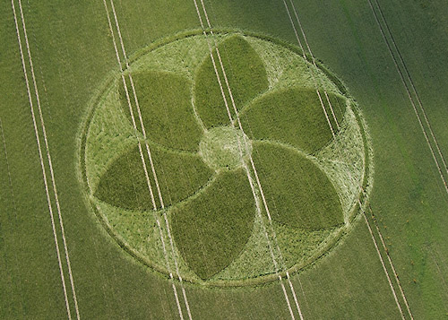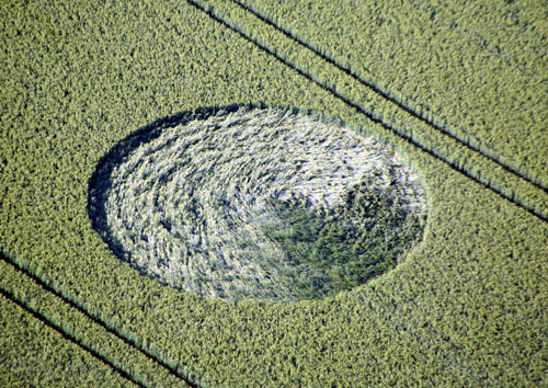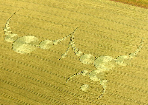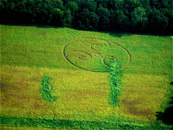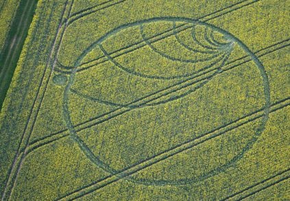 This pictures shows marks in cornfields generated by aliens using interdimensional technology.