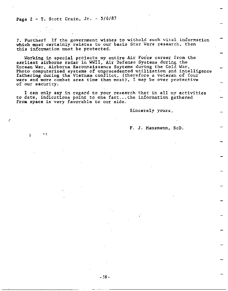 Please, I implore you not to let this effort and their sacrifice be in vain. Help us place this matter in front of the public, the media, and our elected representatives so that the full truth may be disclosed, so that those Earth-saving technologies now classified may be released, and so humanity may enter a new chapter in its evolution as one of many people in the cosmos.