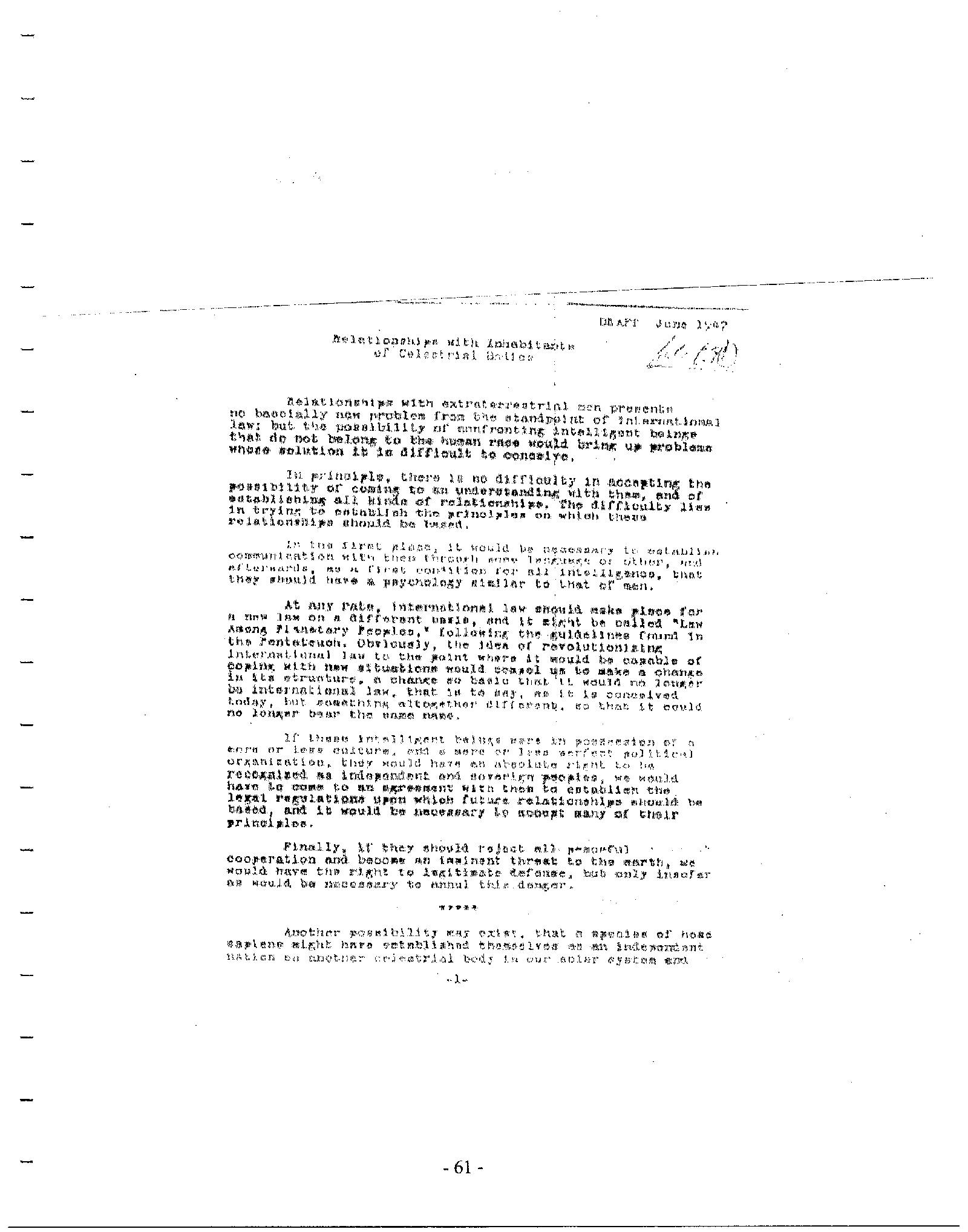 Whatever our perceptions of these visitors, there is no chance that misunderstandings can be resolved through violent engagement. To contemplate such madness is to contemplate the termination of human civilization.