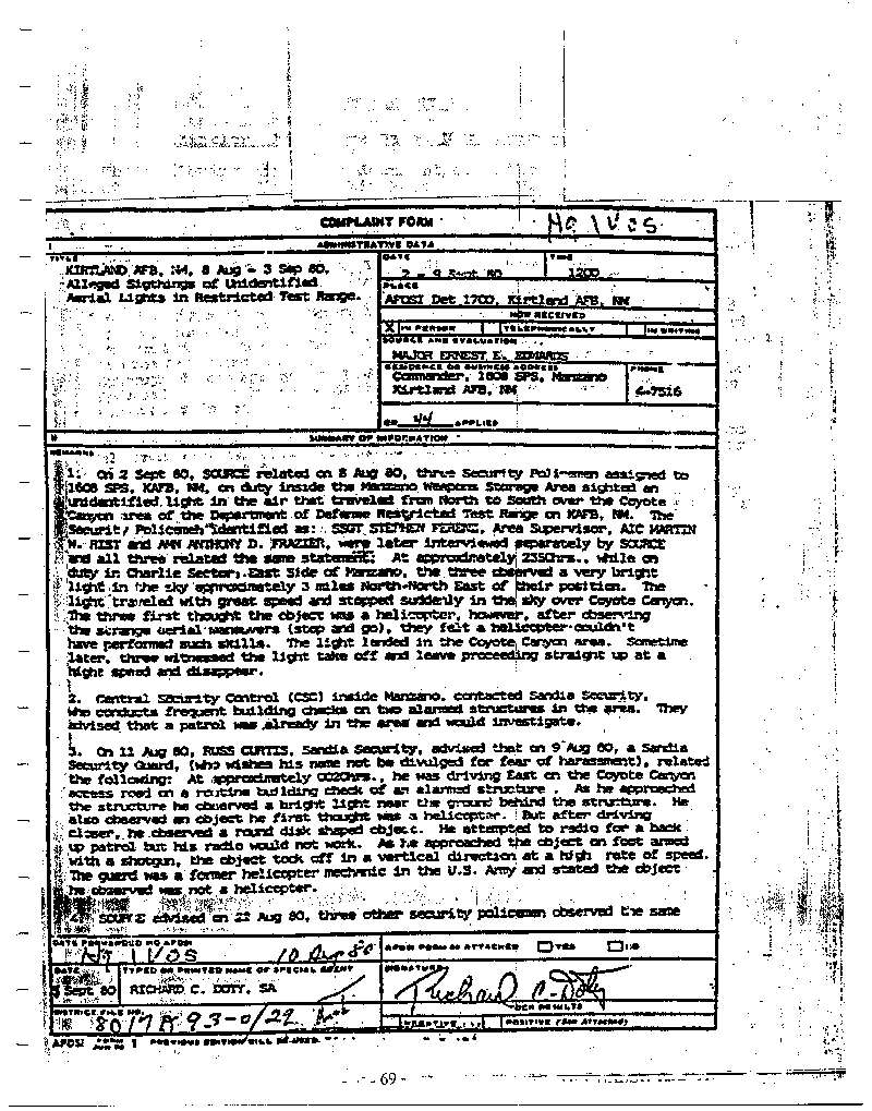 This summary is focusing on the testimony of important first-hand witnesses. We have thousands of government documents, hundreds of photographs, trace landing cases and more, but it is impossible to include them in a summary of this length. These materials will be made available for any serious scientific or Congressional inquiry.